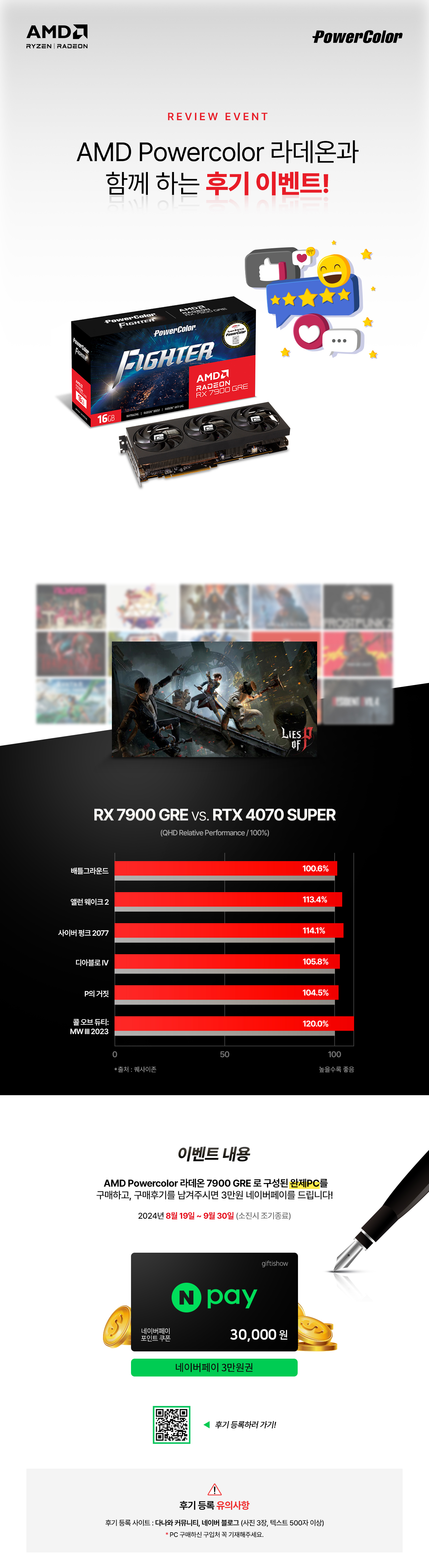 AMD 라데온 7900GRE 구매하고 네이버 3만 포인트 받자~~!!