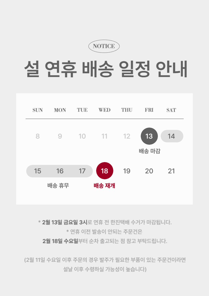 ※ 2026년 설 연휴 배송일정 안내